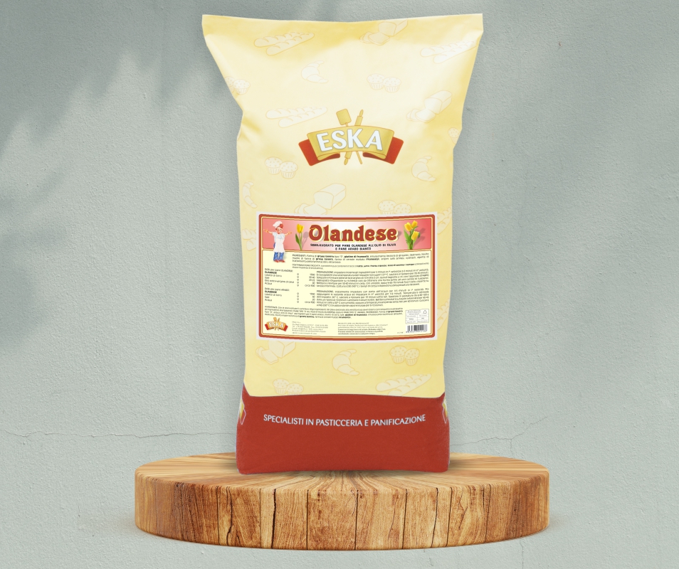 OLANDESE è un semilavorato specifico per produrre un pane condito all’olio di oliva e delicatamente fragrante. Si presta ad essere formato manualmente oppure stampato e così ottenere del buon pane (da noi proposto con la forma di un tulipano, con apposito stampo) oppure del pane arabo, vuoto all’interno, pronto da farcire a piacere.