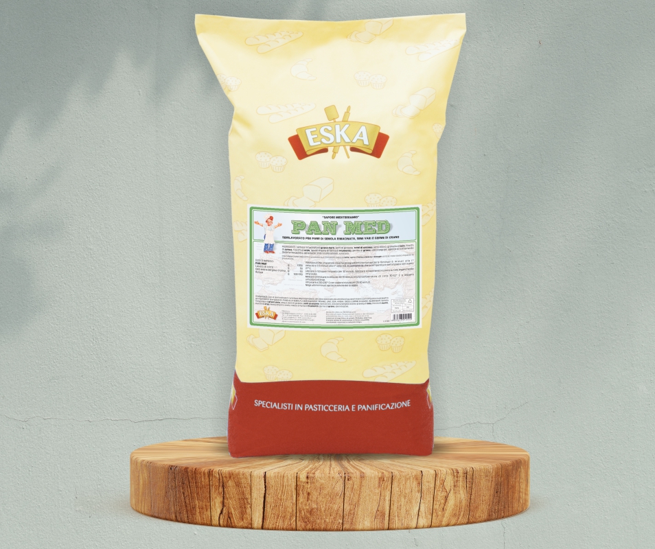 PAN MED    è un semilavorato per preparare un pane a base di semola di grano duro arricchito con semi di girasole e sesamo ed impreziosito da profumati fiocchi di avena e orzo e germe di grano. La soia in granella contribuisce ad aericcchire il conteneuto proteico del prodotto.